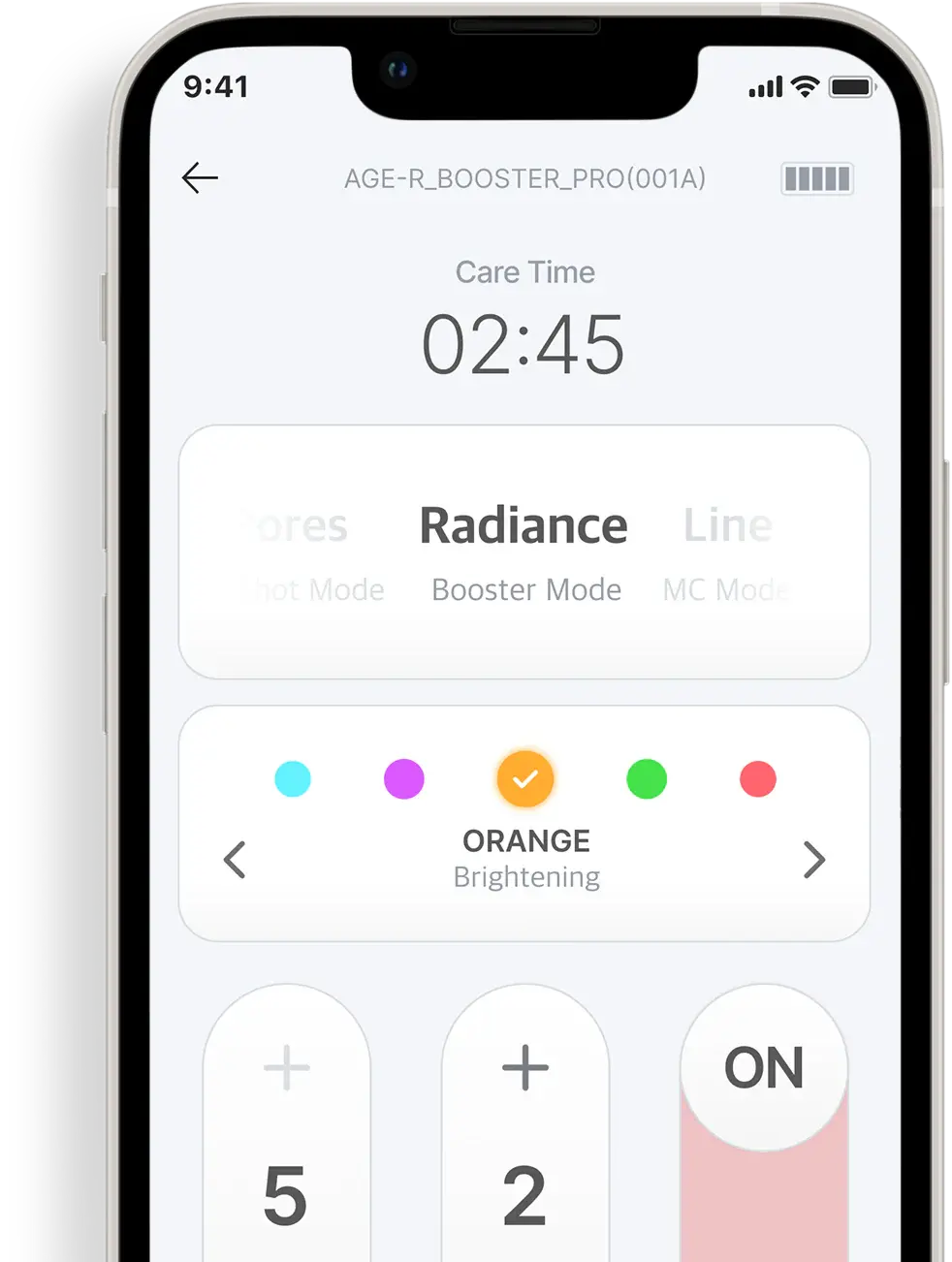 Booster Mode (усиление абсорбции) 1–3 раза в день, 5–10 мин. Нанесите сыворотку/ампулу, водите круговыми движениями от центра к периферии. Эффект: до 785% лучшее проникновение активов → стеклянное сияние.